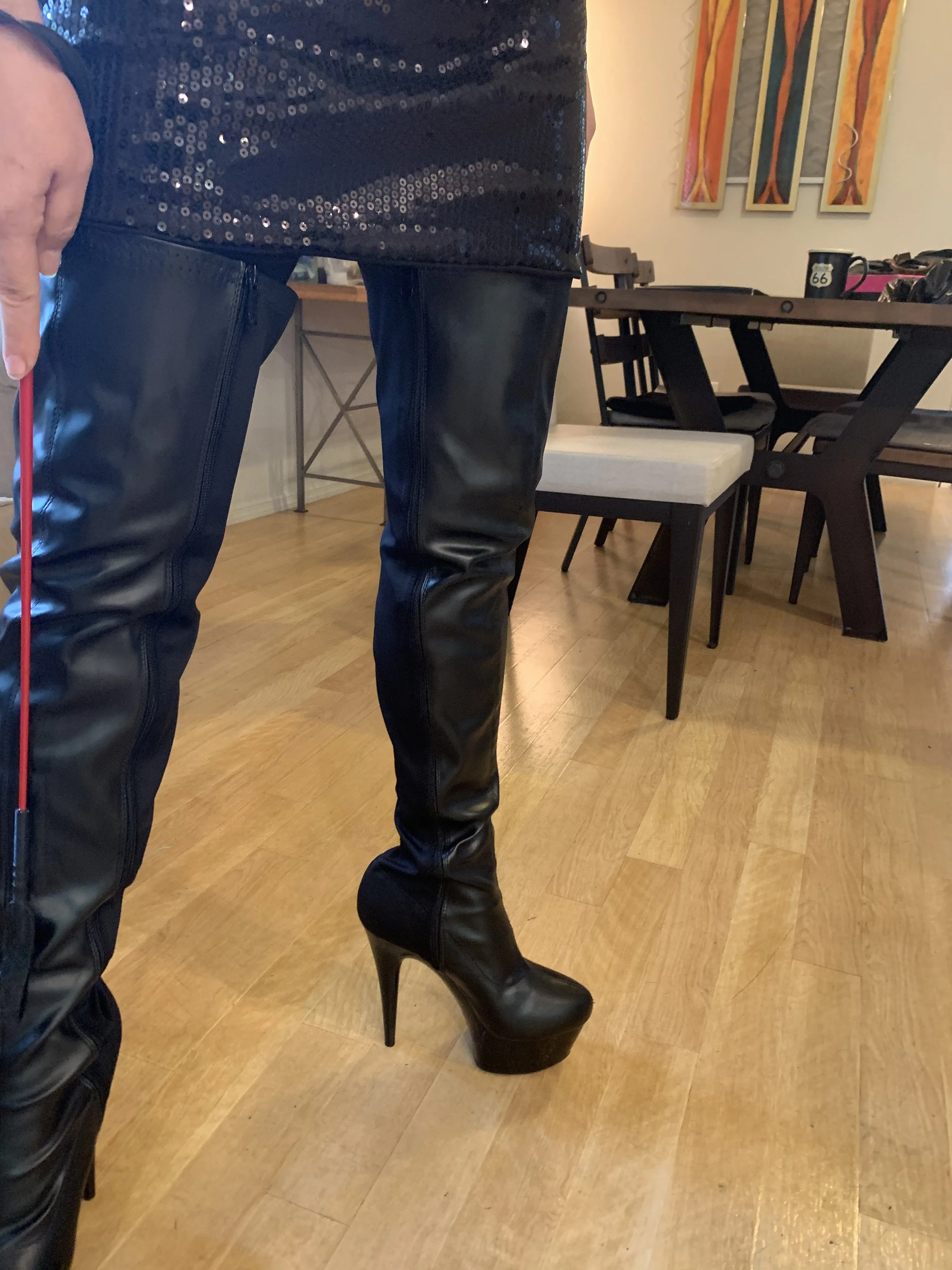 I can stand in those heels for a photo, but if you want to play, they’ve gotta come off… However, if you’re a fan of a crop, we could include that…